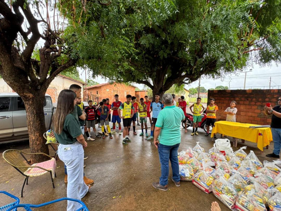 Na manhã deste domingo, 21, a Câmara Municipal de Tocantinópolis participou de uma ação em parceria com a Associação de Jovens do Alto Bonito, Sicredi e o projeto Craques do Futuro, na qual foram distribuidas cestas básicas e materiais esportivos, como coletes e bolas.